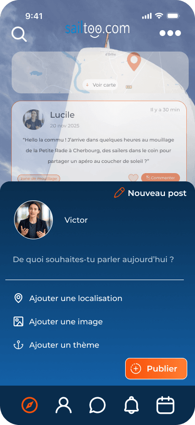 SailToo est la communauté pionnière d'entraide et de navigation collaborative, pensée par et pour l'ensemble des plaisanciers.